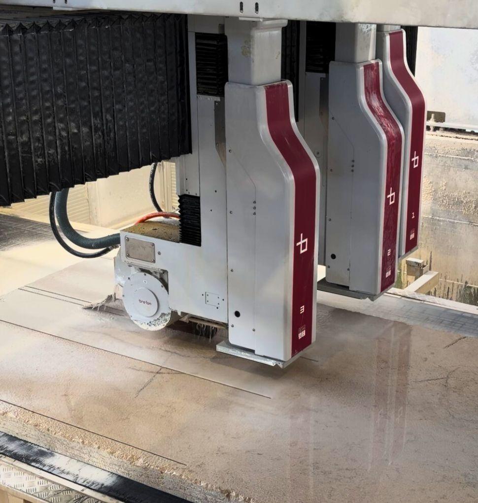 Breton SpeedX - 5-axis cutting centre for high thicknesses - expands Kamen Pazin’s production capabilities with extreme cutting power and operational efficiency. The machine is designed to process very large and heavy stone slabs, handling materials up to 50 cm thick and weighing up to 7–10 tons, with a vertical stroke of 1.2 meters that enables the creation of massive architectural elements.