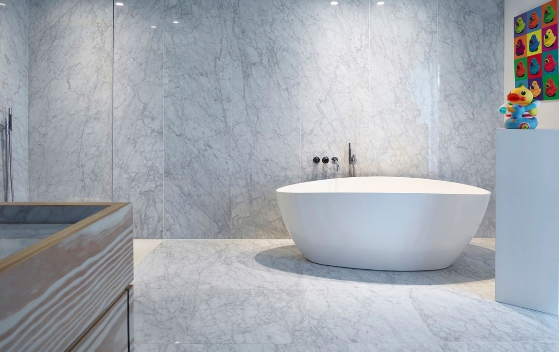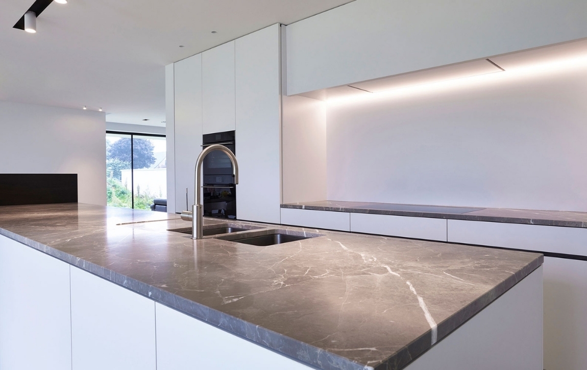 Diese Lösung wurde gewählt, um einer wachsenden Anzahl spezieller Küchenprojekte gerecht zu werden, die äußerst präzise Ausschnitte und eine perfekt abgestimmte Aderung bei Naturstein erfordern.