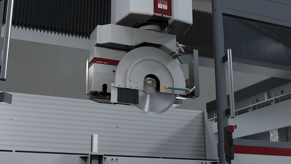 Centro de corte mediante disco de 5 ejes para tablas y piezas de gran espesor