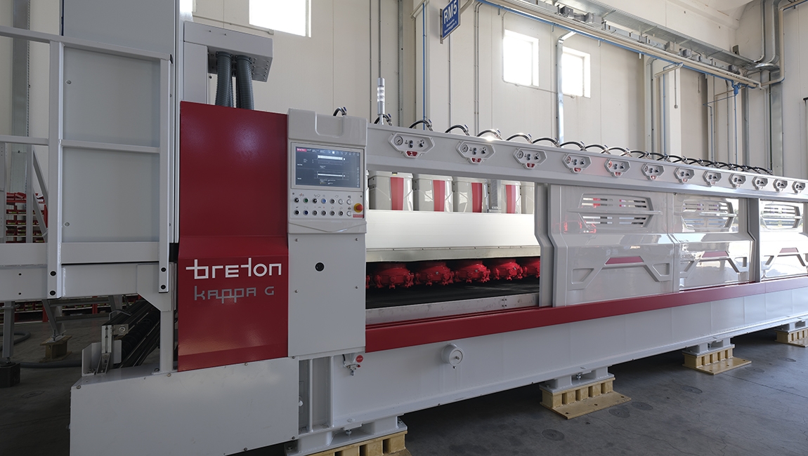 From a technological standpoint, a key feature is the exclusive Tetrix system, which enables the simultaneous processing of slabs of varying widths, without the need for unloading, while also allowing for continuous edge polishing. Enhancing the machine’s capabilities, the patented Tango system applies a controlled oscillating motion to the spindles, significantly boosting the uniformity and quality of the finish.